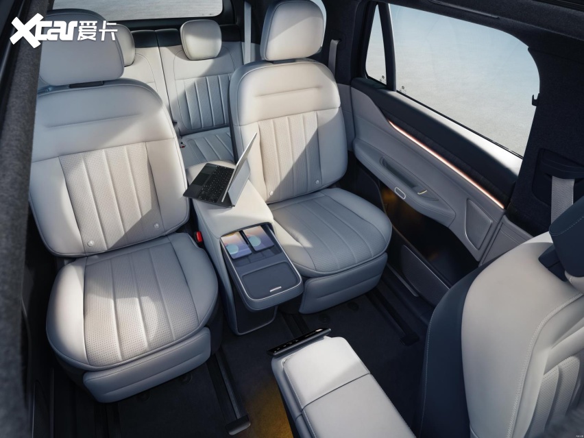 此外,行政版车型的第二排座椅中央还配备了“行政中岛”,支持纵置无线充电、横置NIO PHONE,可实现无线互联、车控功能。并且中岛下方还设置了车载冰箱。